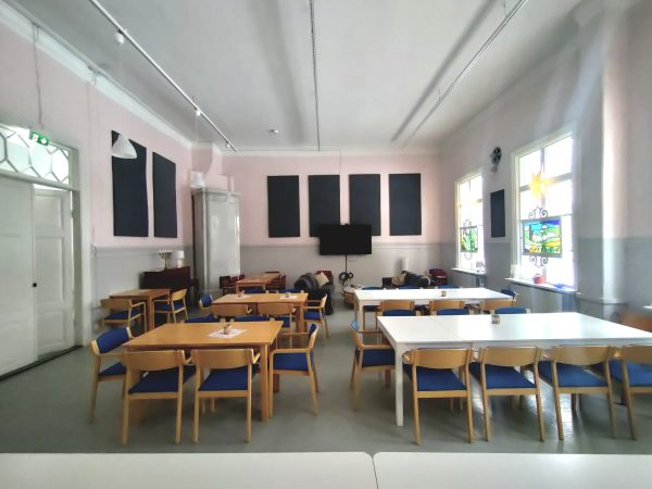 Vi erbjuder två trevliga café- och samlingssalar med tillhörande fullt utrustat kök. Här finns plats för gemenskap, fika, servering, mottagningar eller mindre fester. Lokalerna kan hyras tillsammans med auditoriumet eller separat.